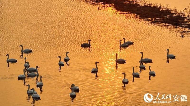 合肥十八联圩湿地内,小天鹅正在栖息。人民网 郭昊摄